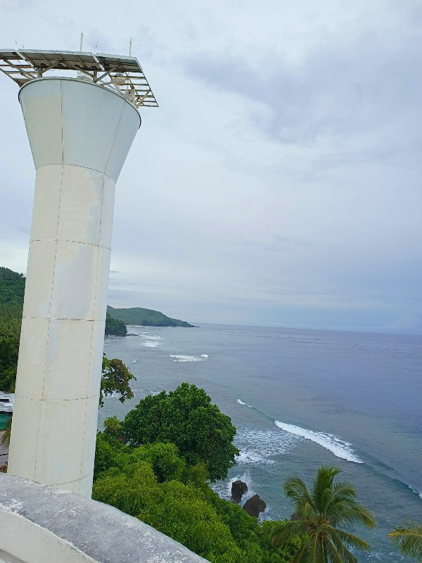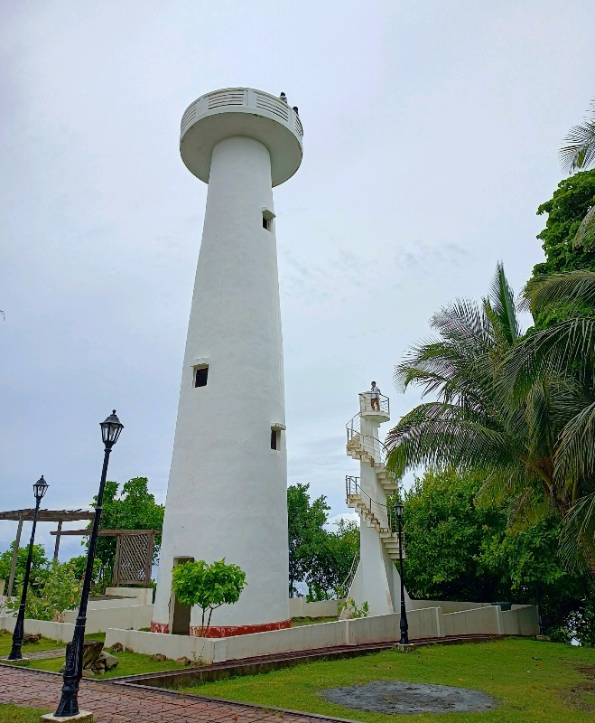 The tallest one with flared top is the only active lighthouse among these three that are standing side by side on the southeasternmost tip of Mindanao.