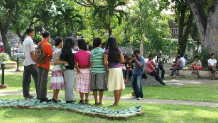In Dumaguete City plaza, whether it’s inday’s day off,  or lovers date, or friends or family hanging out after mass, moments can still be captured in an old school way, as one can see men with some photographic equipment roaming around the plaza for an on-call portrait shoot.