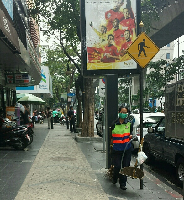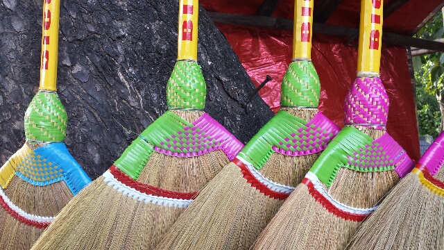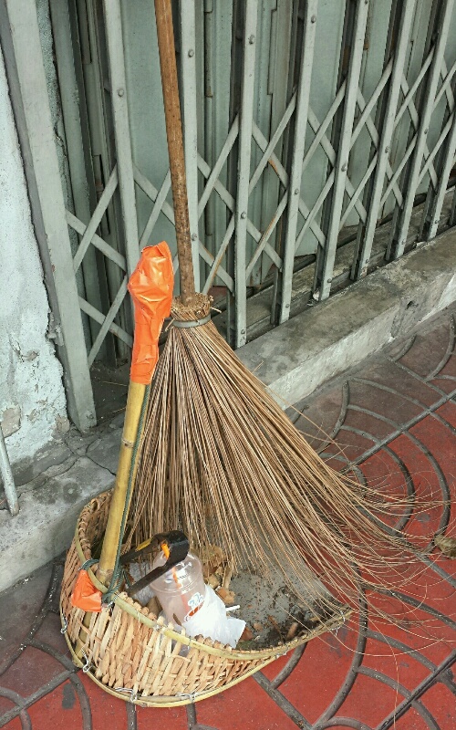 Dustpan for outdoor use with galvanized iron base, and natural materials for the rest of its parts, from its wall to its handle, is one design that’s probably particular to Bangkok only. As for public street cleaning, looks like it’s practical to attach a carry handle apart from its sweeping handle.