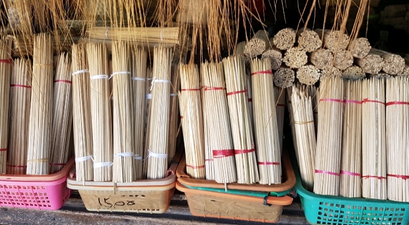 Split bamboo pole is the most applicable equipment for this guy to manually carry as many huge bags of food stuff as possible. Though rudimentary, his effort in making sure that the load in both ends is of equal weight shouldn’t be discounted.