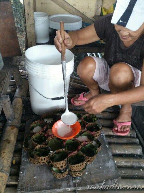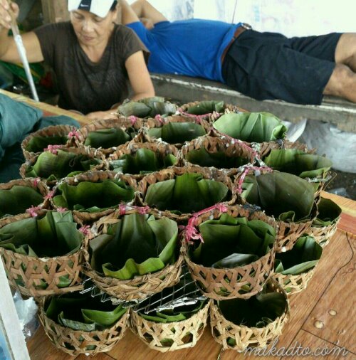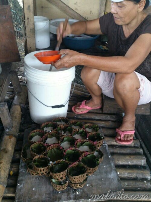 Weaved individual holders used for steaming bibingka inside a giant caldero