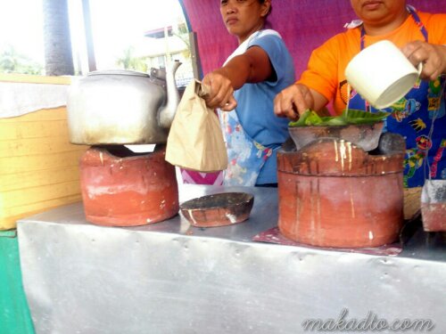 The avocado leaf-pandan leaf tea inside that kettle on the left side is given for free as an accompaniment to the rice cake