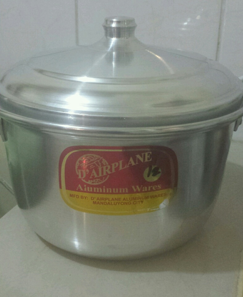 From what has been passed on to me, the brand name came to be because long time ago their pots and pans were really crafted from aircraft aluminum scrap. D’ Airplane is an old low-cost aluminum cookware brand that’s very common in the country and still being sold in department stores.