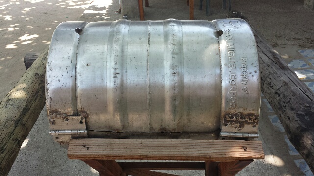 Live charcoals in that square tin pan covering the clay pan where you put the bibingka batter in banana leaf and this is placed on top of clay stove also fueled with live charcoals. Presenting the rice cake oven