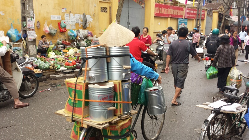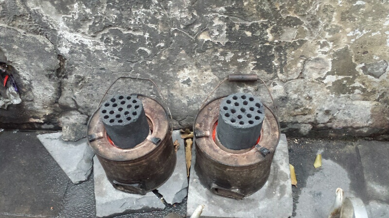 There is life on the pavements of Hanoi that it’s not possible to use those for walking exclusively (people walk on the road in sync with vehicular traffic). The pavement is a living space where people park their motorbikes, buy and sell, worship (joss paper burning), eat, prepare food, and cook. After observing several cooking scenes, I’ve noted that people use cylindrical charcoal briquette for a stove purposely-built for it.