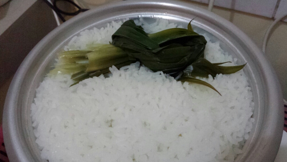 To achieve an aromatic rice every saing, include few blades of pandan leaves in the steaming.