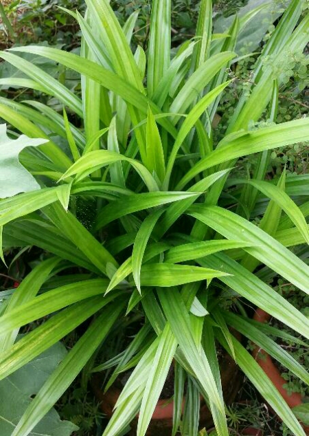 My only pot of pandan plant, my source of fresh pandan leaves. Just cut few blades for saing purposes