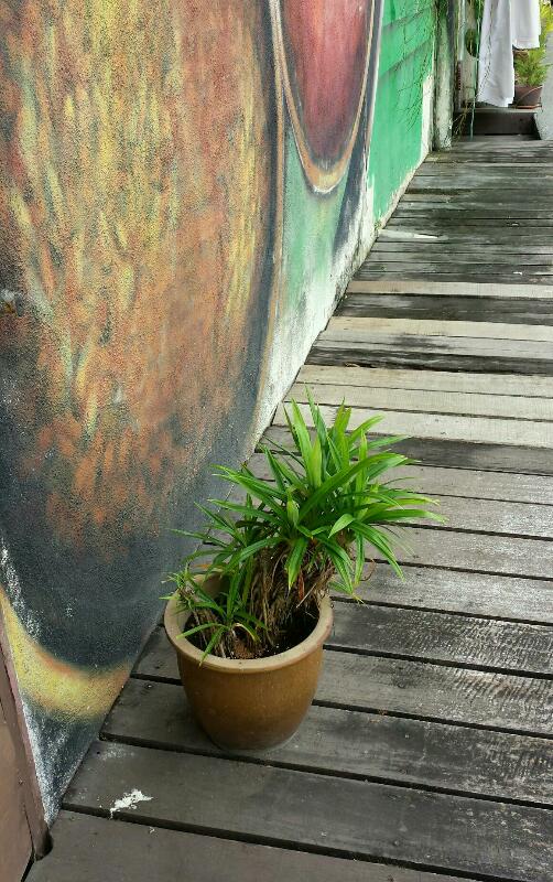 As I travel in Melaka, I took some plant snapshots here and there…That pot of pandan on the wooden floor against the wall is a pretty sight.