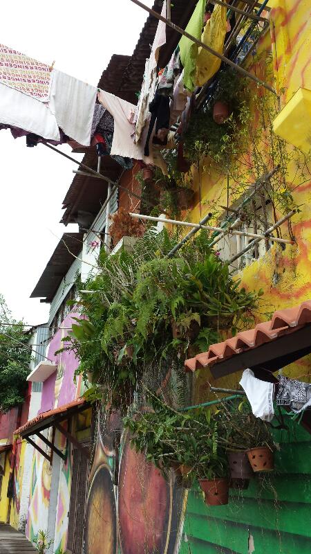 Meanwhile, those untamed hanging container plants against a wall with artwork caught my attention, for it seems that the water dripping from clothes has something to do with its flourishing state. Like an unintentional irrigation system.