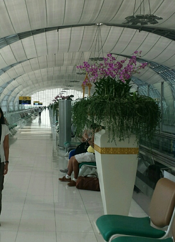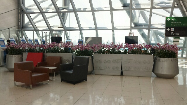 Lots of orchids inside Suvarnabhumi Airport in Thailand