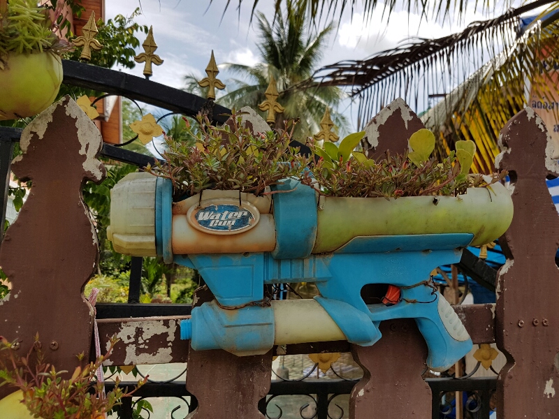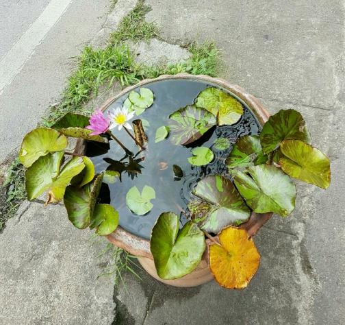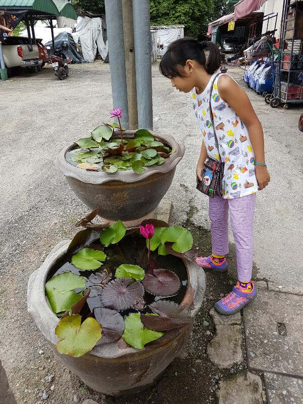 One peculiar thing about Chiang Mai shops is the presence of bowl ponds at their frontage. Whenever we walk by each we try to scrutinize the water lily and what type of tiny fish that dwells in it. Yes there are tiny fish so mosquitoes  will not use it for breeding.