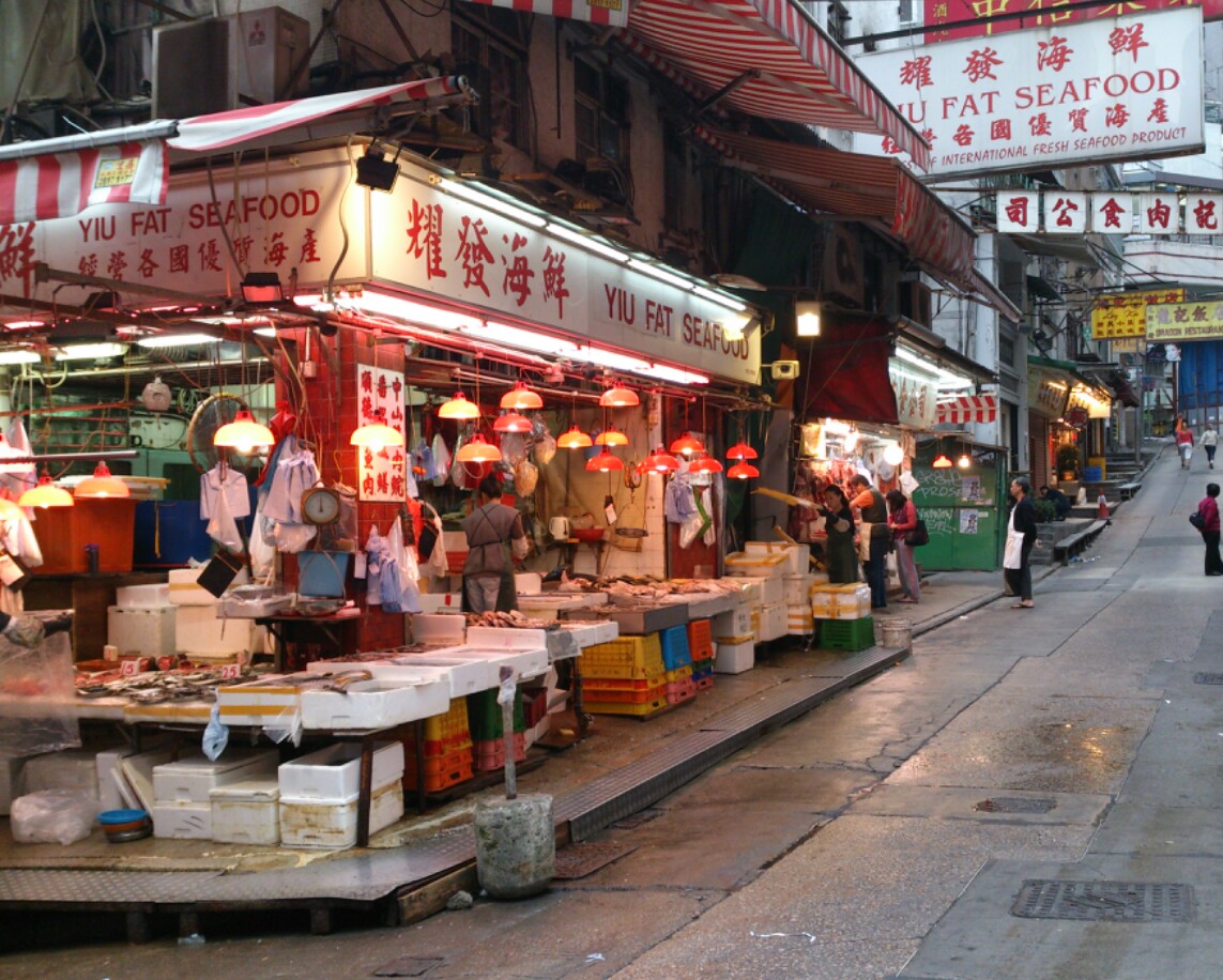 Fresh seafood stall in Sheung Wan, Hong Kong Island side