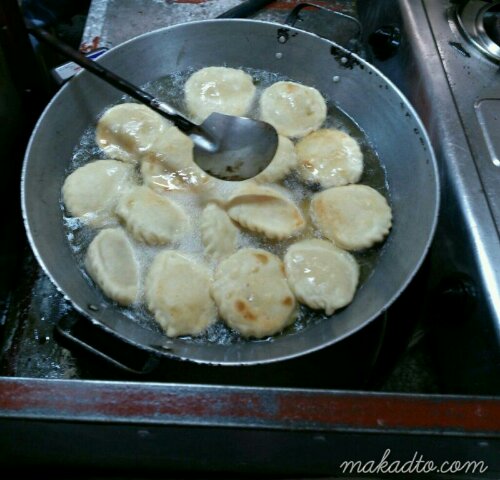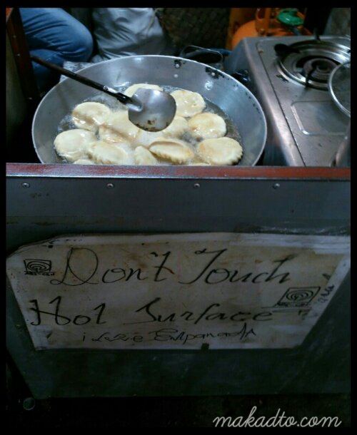 Put some filling such as meat and/or vegetables inside dough and deep fry it. When cooked, you now have an empanada. Of course there are so many variations of this deep-fried filled dough worldwide. So while I snacked on my chicken empanada Taal version, I think of the samosas I ate as starter in Indian restaurants and the curry puffs I bought for breakfast from the street vendors in Malaysia.