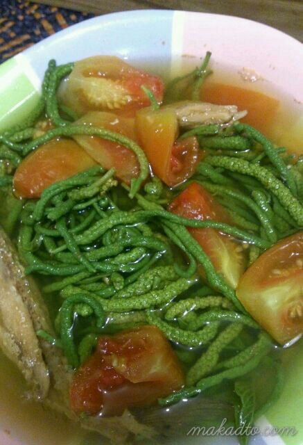 Boil tomatoes and salted dried fish, add himbabao and season with salt. The broth will become a little bit thick and deliciously slimy