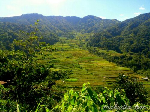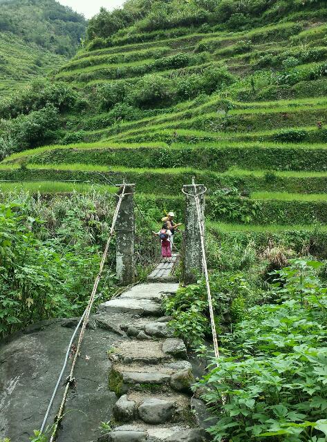 After about 1.5 hours of trekking from Batad village, the destination village of Cambulo is now visible from this spot. See those white specks in the slopes? That's the destination on foot.