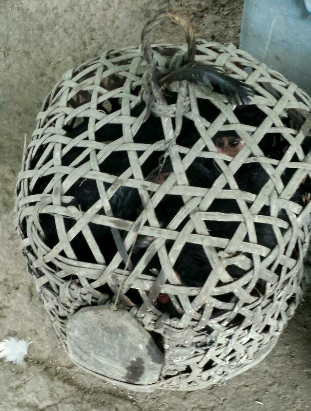 In Ifugao villages, one can notice this dome shaped basket with wooden floor and wooden door used for transporting and caging chickens.