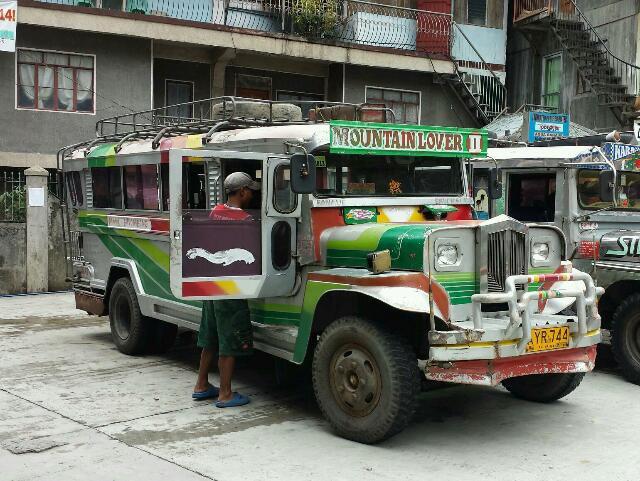 Jeepney designed for the steep climb to Batad saddle. I like how the headlights are framed by lizards and that lizard on the side mirror
