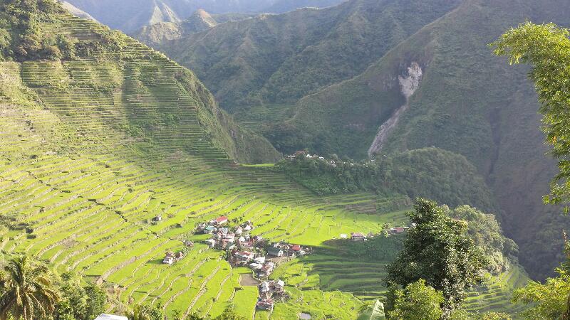Structures seen on the slopes of Batad village. The Ifugao rice farming methods haven’t changed much, but the houses have evolved
