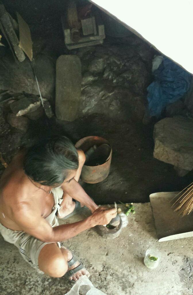 She is very old and her upper body is bended at the waist when walking (like most elderly Ifugao women). She walks barefoot in the mountain trails aided by a wooden stick. Her countenance has the look of a wise figure with her prominently lined face. She is wise in fact and talks articulately in English (like most Ifugaos, as I’ve noted).
