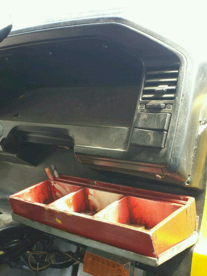 A customized wooden tray for sorting coins with a recess for sorting rolled paper bills. Makes it easy for the jeepney driver to deposit fare and give change while handling the wheel at the same time.