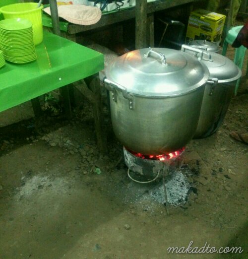 A lugawan place is attractive if there’s a giant caldero full of lugaw continuously heated in a stove using either charcoal or wood as fuel