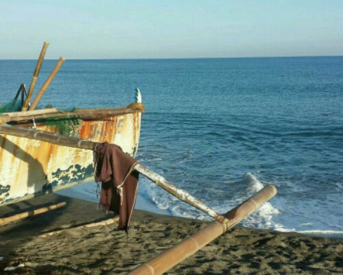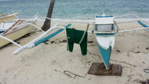 A beached banca’s great exposure to tropical sun makes it a practical option for clothes drying.