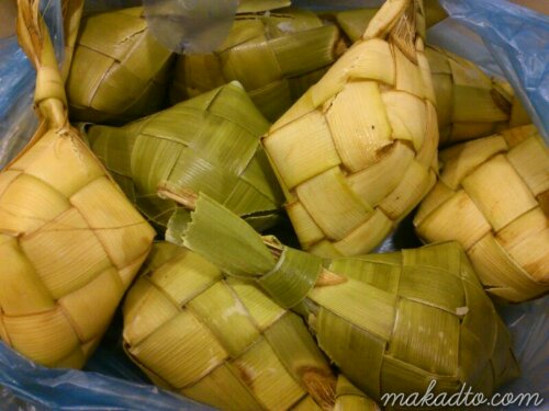 Rice boiled inside weaved coconut fronds. AKA puso.