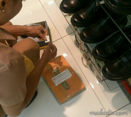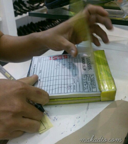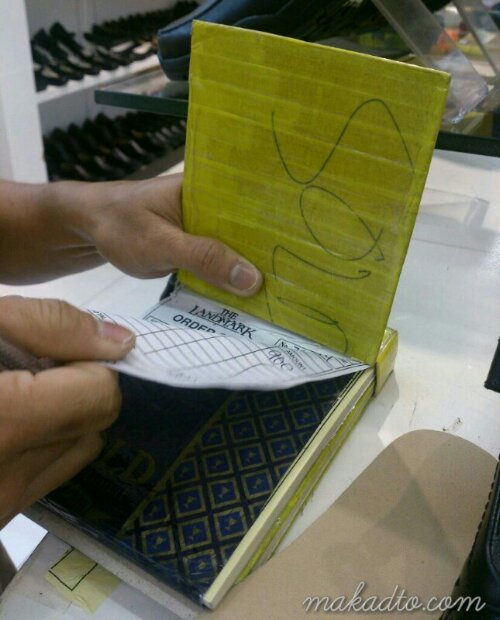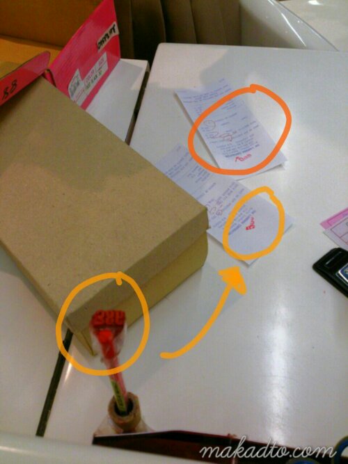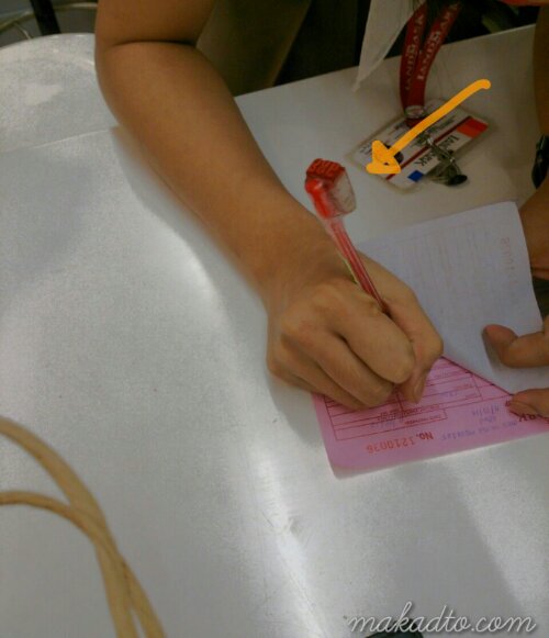 During store checkout, each receipt needs to be stamped with a number code after checking each item with a pen and so the Landmark Department Store ladies taped the rubber stamp around the pen to handily do the ‘check and stamp’ job over and over again.