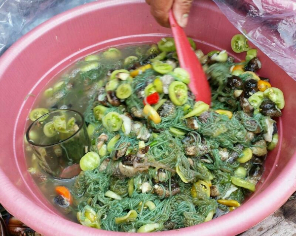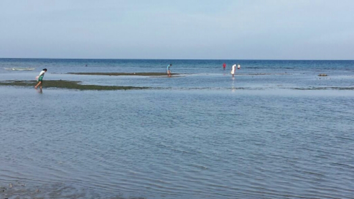 On this side of the bay at low tide, locals are also seen gathering sea urchins and aninikad.
