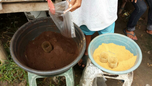 Ground roasted coffee and ground roasted soybeans at 10 pesos per glass