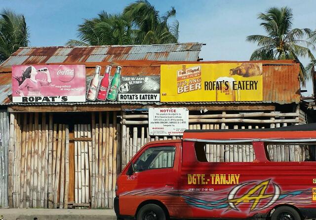 A carinderia spotted in Dumaguete has variation of its name written in its sponsored signages. What we have here presumably are exemplifications of name mispronunciation and misinterpretation of penmanship. My guess is that the correct name is Rofat and San Miguel got it right on its signage –  ROFAT’S EATERY. Meanwhile, the Coca-Cola agent must have heard it as Ropat due to mispronunciation of f, hence its ad signage for the eatery has the big bold ROPAT’S on it. On the other hand, Cobra agent probably wrote Rofat correctly on paper but the guy who painted the sign mistook the f as t, hence ROTAT’S EATERY. Who cares, these agents might have thought, as long as Coca-Cola or San Miguel or Cobra brands are explicit and unmistakable.