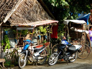 Habal-habal one type of local transportation in the Philippines and this one in Samar has a roof.