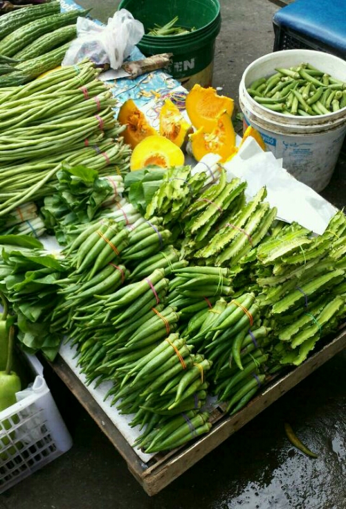 Pinakbet packet members: bitter gourd, string beans, squash, okra, eggplant
