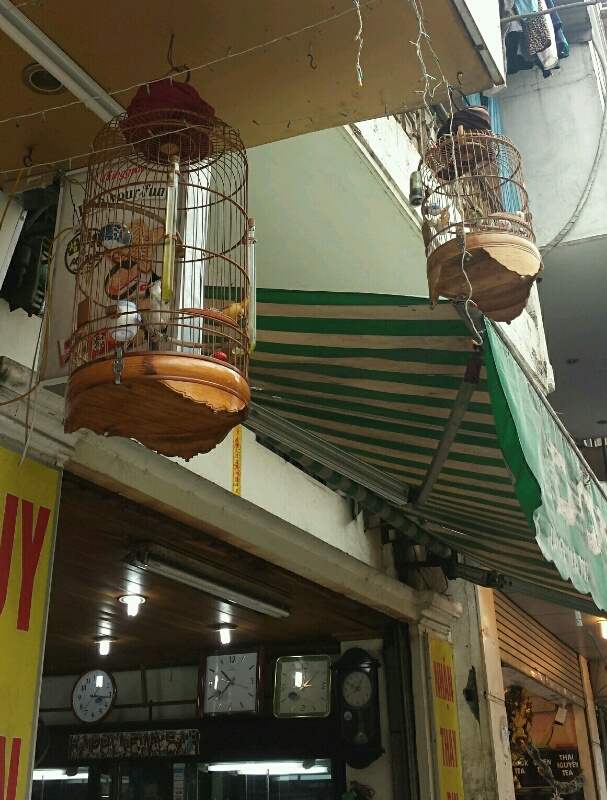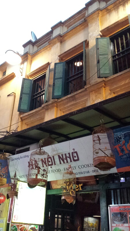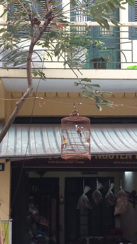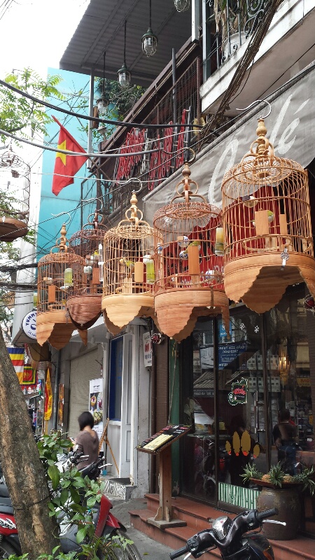 Hanoi’s soundtrack is the beep beep (and vroom vroom) of the motorcycles though in the background one can often hear bird calls. As one looks up expecting to see urban birds on trees like those magpies in Korea, there are none. Instead, there are attractive ornamental wooden birdcages housing pretty countryside birds (too pretty to be city dwellers) hanging in front of shops or at the balcony of thin buildings everywhere.