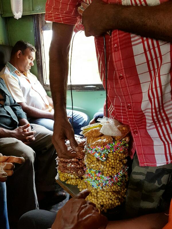 Finger snacks in cellophane packs are tied to a thick wire that is formed like a bag handle for easy carrying on a packed and moving train. Now from a passenger’s perspective, it is easy to see different sort of pica-pica available for sale.
