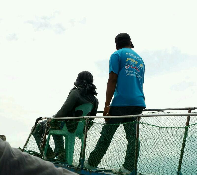 Lookout and passenger assistance task for these two banca men in this motorized outrigger boat from Batangas bound for Puerto Galera
