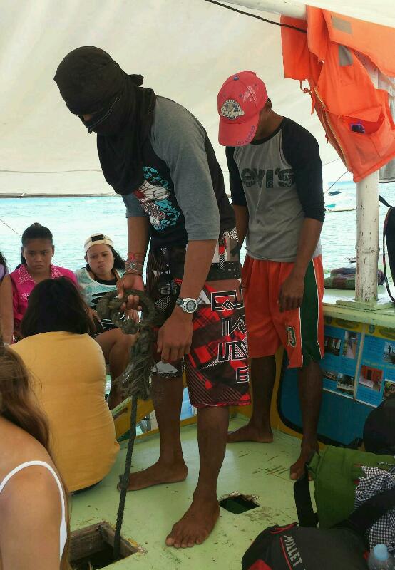 What they’ll do? Three bangkeros will hold the rope then pull it abruptly at the count of three to manually start the motor of this banca. Malapascua Island, Cebu