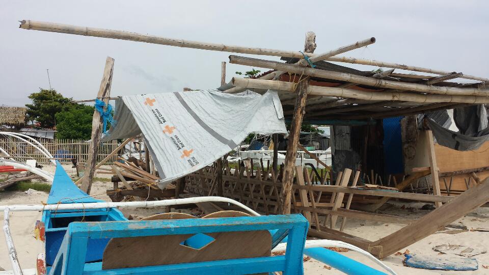 Last August, throughout the island of Malapascua in Northern Cebu, I’ve seen plenty of Red Cross tarpaulins repurposed as house roof extension for the rebuilt homes or as boatyard shade. I even came across a Shelter Box – still standing.