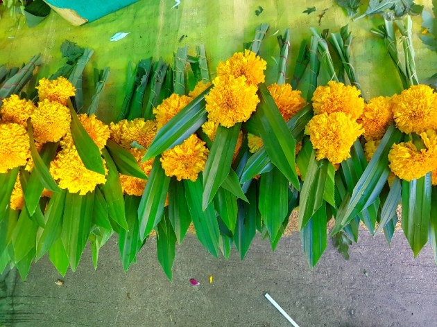 Marigold with pandan leaves (flowers for Buddhist temple offering)