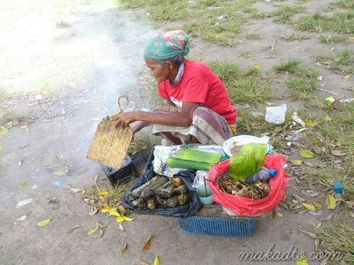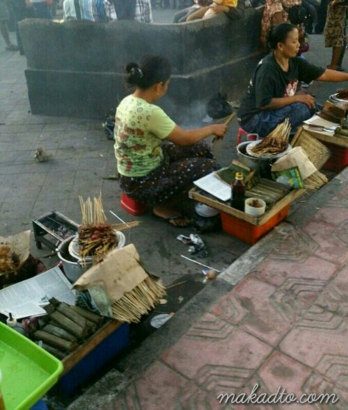 Looks like it’s a woman’s job to peddle sate on a chosen spot sitting almost at floor level beside their tiny grill.