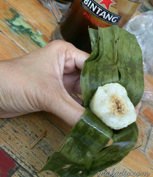 Usually this type of rice cake does not have packaging, but in Iloilo it is wrapped in banana leaves. I have seen locals pair this with batchoy.