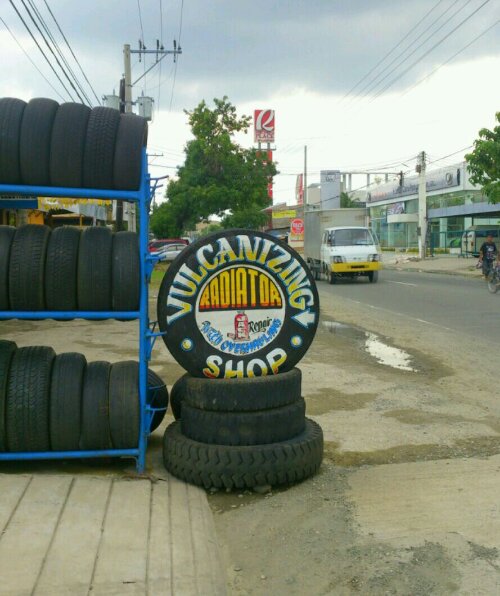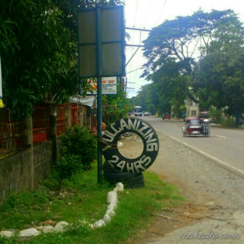 It is common to see a tyre used as signage of a vulcanizing shop. You can see it clearly from the highway as you drive by.