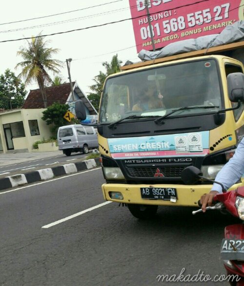 A semen truck! Hehe. The driver I can see was smiling and waving at me balancing at the back of the motorbike twisting my torso so I could look back for a snapshot of his truck. He must have wondered why. Indonesians are very friendly and warm people and they giggle a lot.
