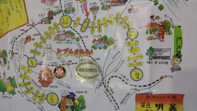 A wrapping paper for the streetcar box with cute map of the Toden Arakawa Line