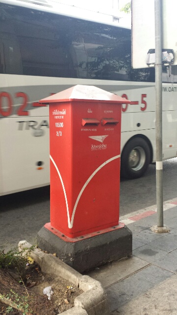 Red post boxes in Bangkok are in pentagon shape or shaped like a house. The left slot says “BANGKOK” while on the right “OTHER PLACES”. Very straightforward.