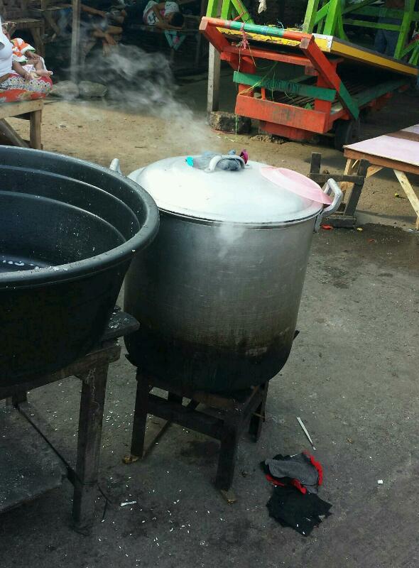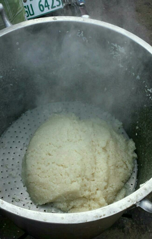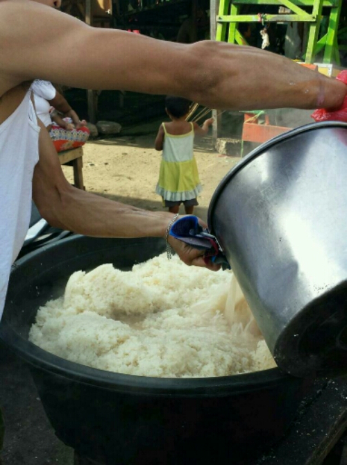 Steam the glutinous rice (bugas pilit) al dente in the caldero