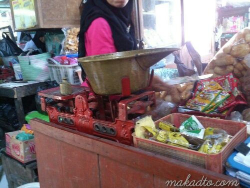 Weighing chili peppers, the main ingredient in lots of Javanese dishes and of course the sambal too.